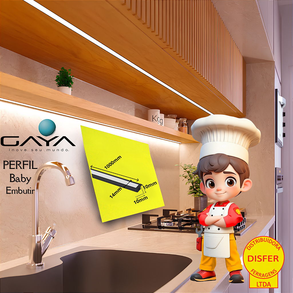 Se você busca um acabamento impecável para seus projetos de iluminação, o Perfil para Fita LED de Embutir Baby da Gaya é a escolha ideal! Com um design compacto e elegante, ele é perfeito para ser embutido em marcenaria, armários, móveis, balcões e muito mais!