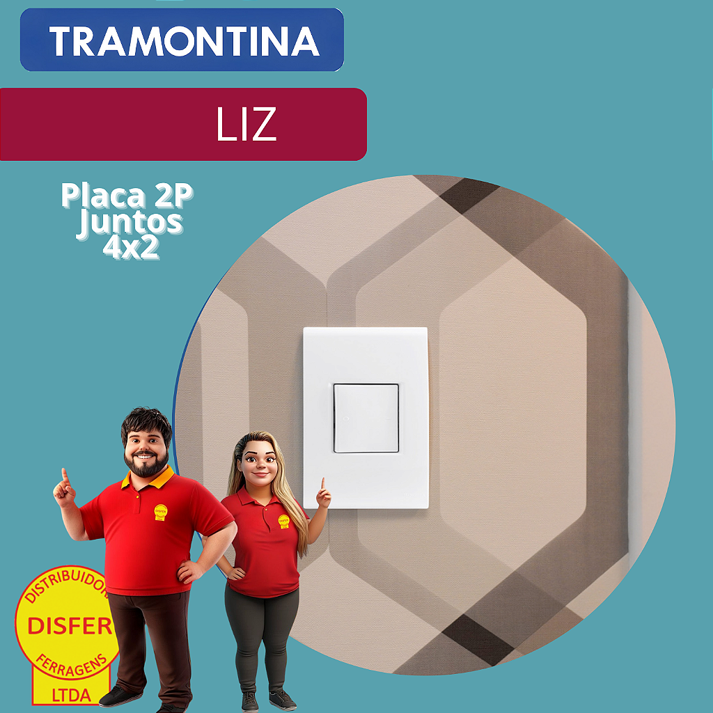 A Placa 2P Juntos 4×2 LIZ da Tramontina garante um acabamento moderno e uniforme para suas instalações elétricas. Compatível com os módulos da linha LIZ, é ideal para montagem de interruptores e tomadas com praticidade e segurança.
