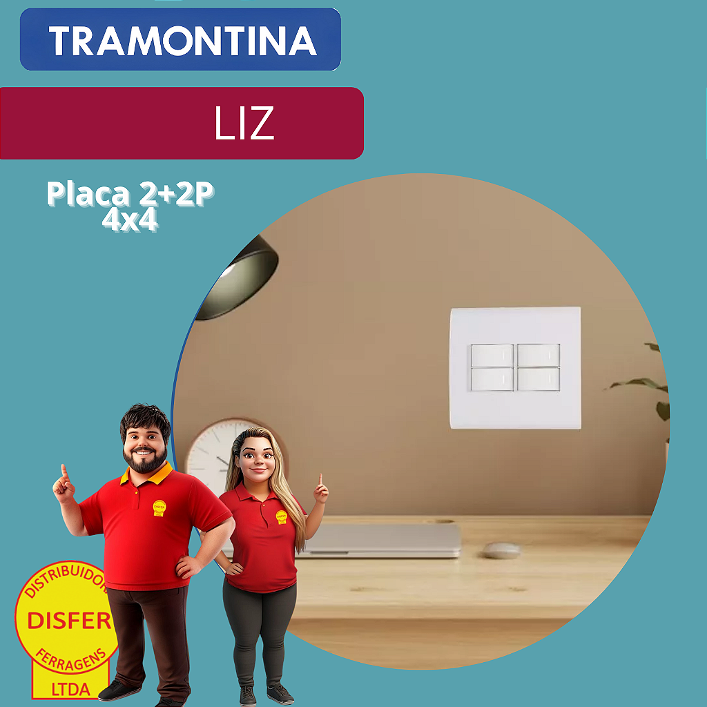 A Placa 2+2P 4×4 LIZ da Tramontina é a escolha perfeita para quem busca versatilidade e praticidade em instalações elétricas. Com espaço para acomodar quatro módulos (2+2), ela proporciona um acabamento elegante e seguro.