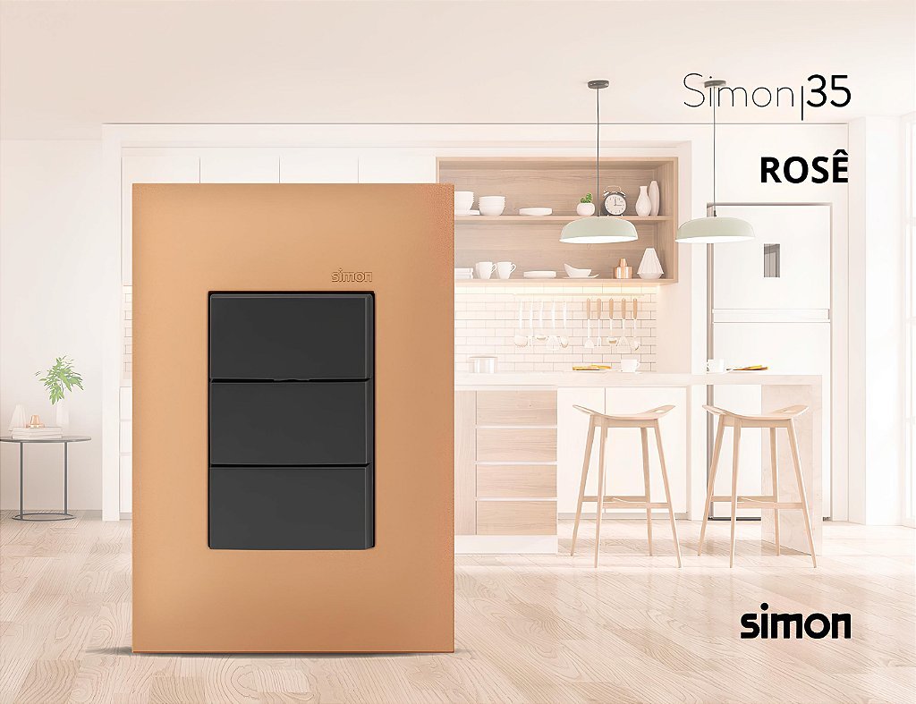 A Placa 4×2 Cega da Linha Simon 35 oferece uma cobertura elegante e funcional para seus pontos de instalação elétrica, mantendo a estética sofisticada do ambiente.