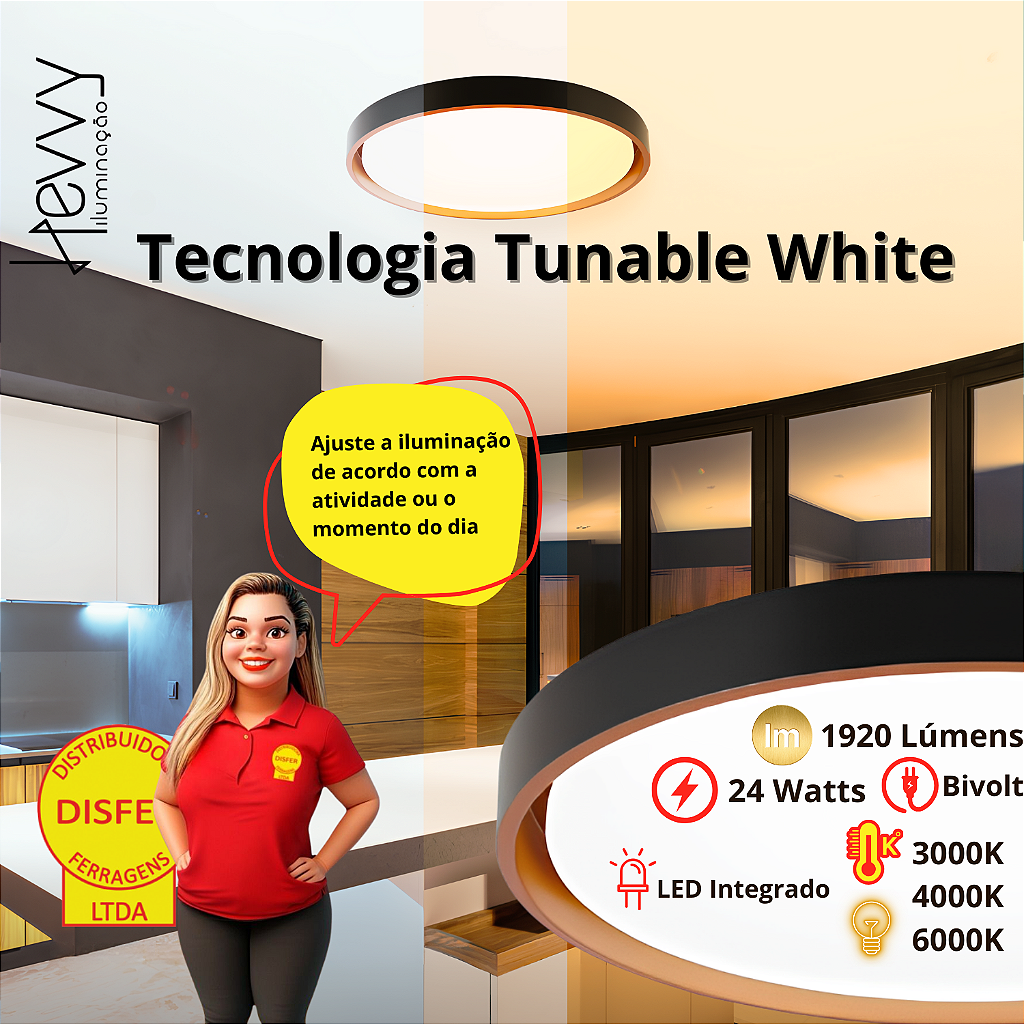 🌈 Tunable White – escolha entre 3000K, 4000K ou 6000K direto no interruptor