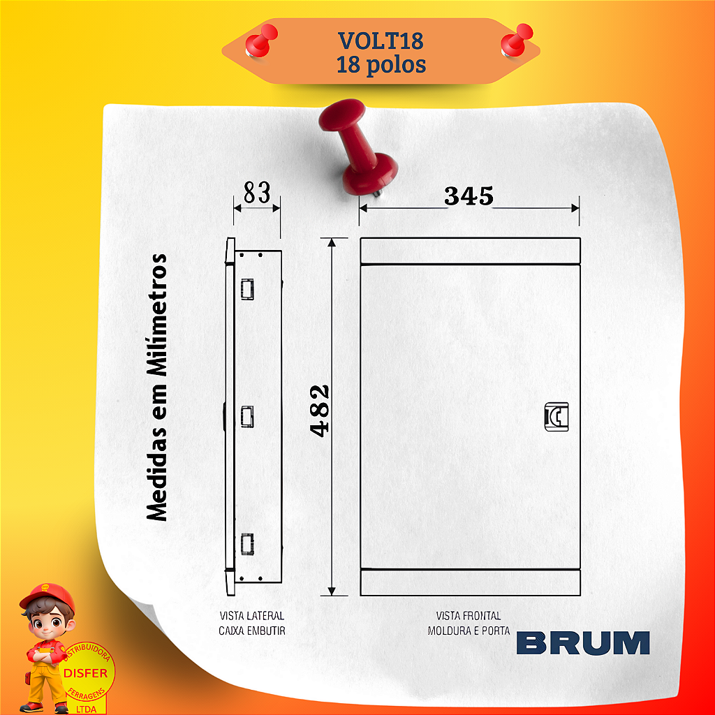 Se você busca segurança, praticidade e um design inovador, o Quadro de Distribuição VOLT18 da Brum é a escolha ideal! Com capacidade para 18 polos e corrente de até 100A, ele é perfeito para instalações elétricas seguras e organizadas. Além disso, oferece amplo espaço para entrada de cabos, facilitando a instalação.