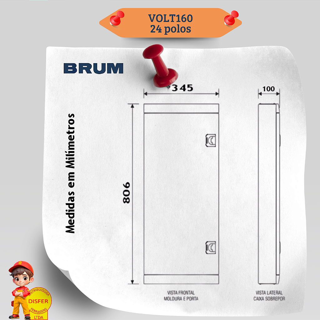 Se você precisa de um quadro de distribuição robusto, seguro e funcional, o VOLT160 da Brum é a escolha perfeita! Com 24 polos de distribuição e 12 polos auxiliares, ele suporta até 160A, garantindo eficiência e organização para sua instalação elétrica.