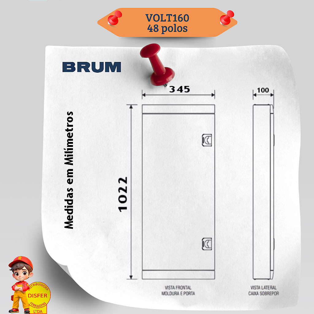 Se você precisa de um quadro de distribuição robusto, seguro e funcional, o VOLT160 da Brum é a escolha perfeita! Com 48 polos de distribuição e 12 polos auxiliares, ele suporta até 160A, garantindo eficiência e organização para sua instalação elétrica.