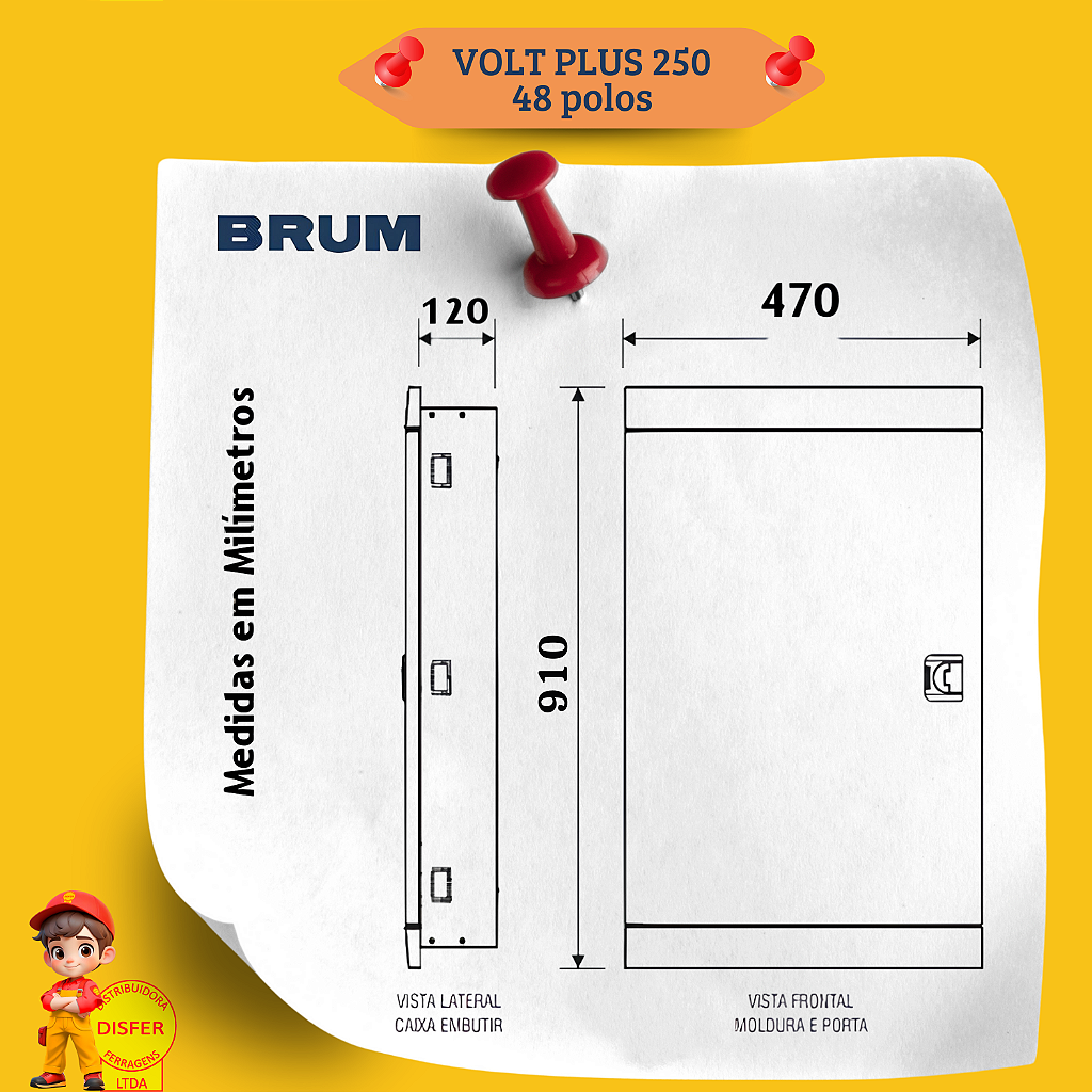Se você busca segurança, organização e alta capacidade para sua instalação elétrica, o VOLT PLUS 250 da Brum é a escolha ideal! Com 48 polos e suporte para até 250A, ele foi projetado para aplicações que exigem distribuição eficiente e confiável.