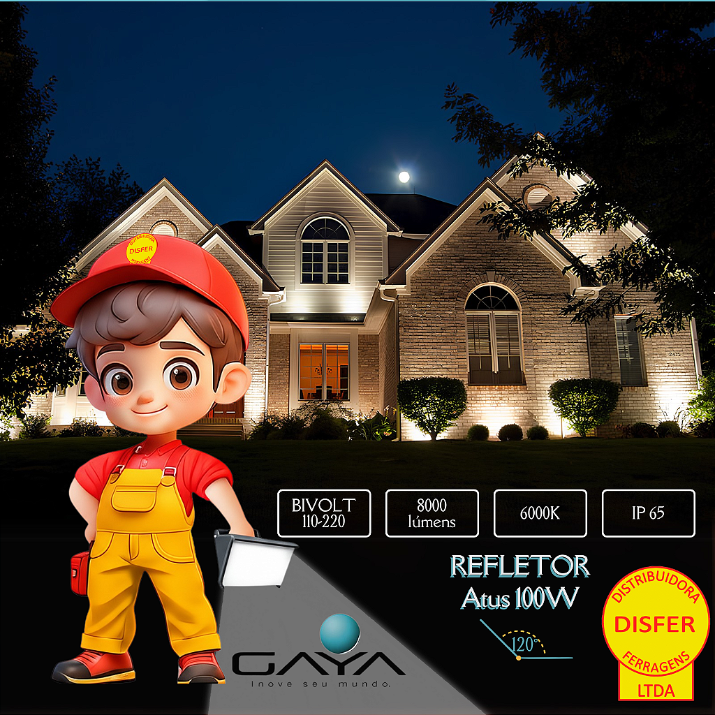 Se você precisa de iluminação intensa, durável e econômica, o Refletor LED Atus 100W da Gaya é a escolha perfeita! Com 8000 lúmens e luz branca fria 6000K, ele garante máxima claridade e segurança, sendo ideal para grandes áreas internas e externas.