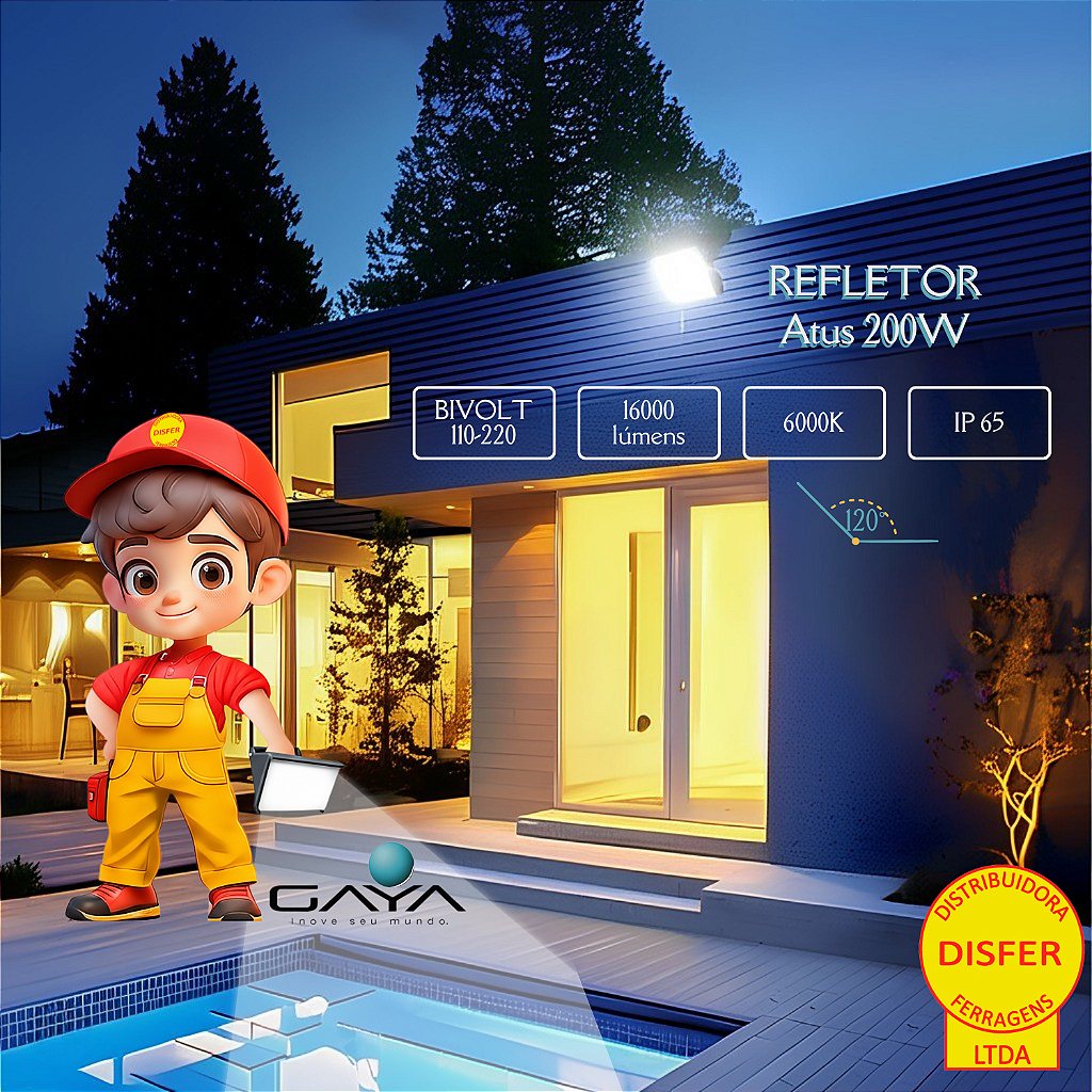 Se você busca máxima potência e eficiência, o Refletor LED Atus 200W da Gaya é a solução ideal! Com 16.000 lúmens e luz branca fria 6000K, ele proporciona iluminação intensa e uniforme, garantindo segurança e visibilidade total em grandes áreas.