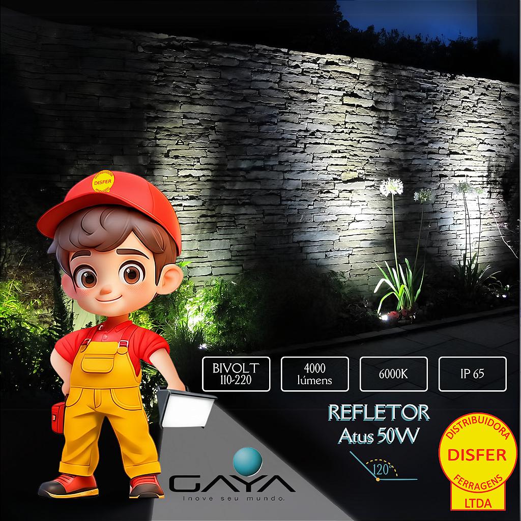 Se você precisa de iluminação forte, durável e econômica, o Refletor LED Atus 50W da Gaya é a escolha ideal! Com 4000 lúmens e luz branca fria 6000K, ele garante máxima claridade e segurança, sendo perfeito para áreas externas e internas.