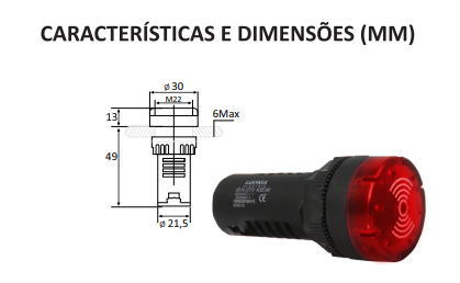 ⚡ Garanta mais segurança e eficiência! O Sinaleiro 22mm com LED e Sirene Vermelho 24V da Lukma é a solução perfeita para um sistema de alerta confiável e de alto desempenho.