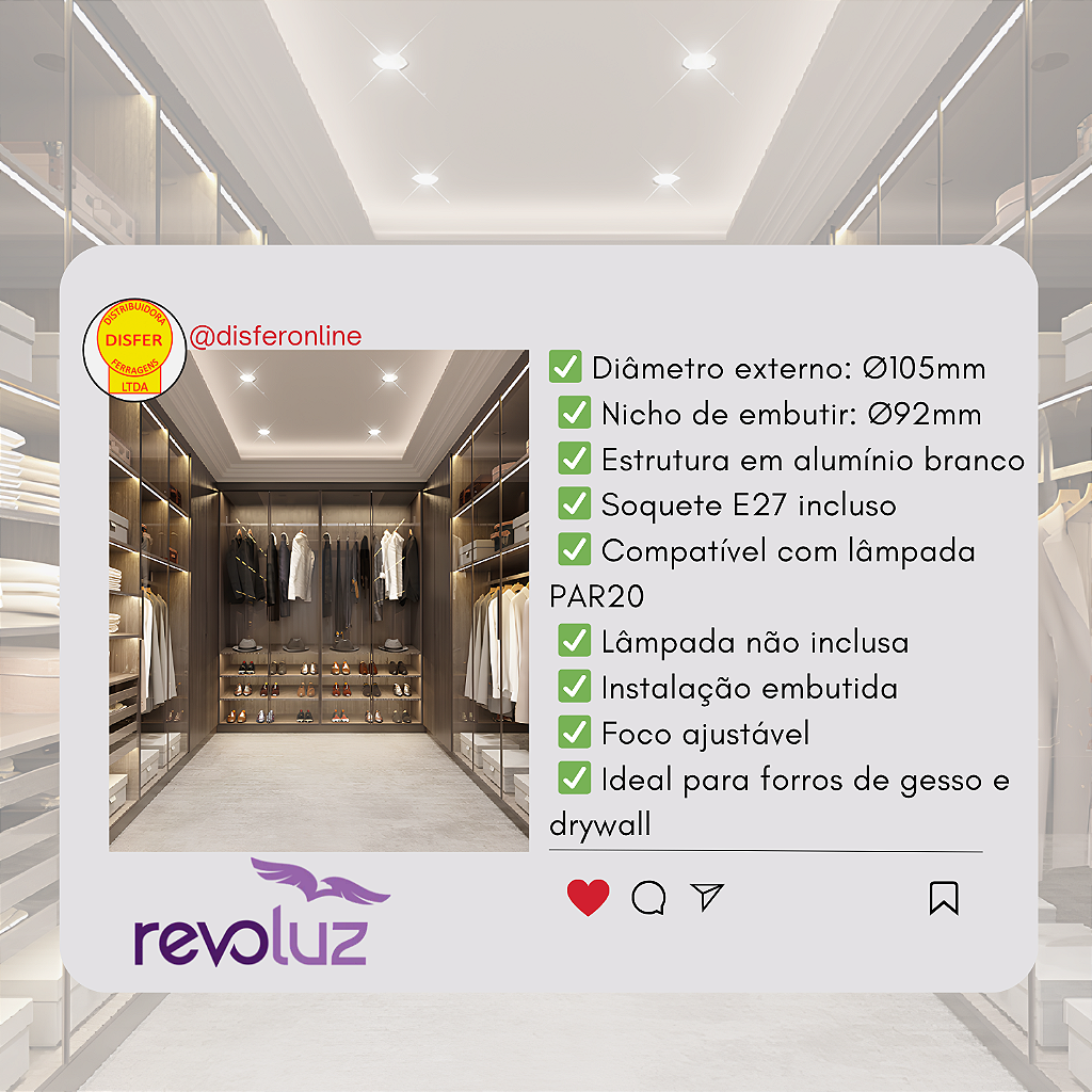 👉 A escolha certa para quem quer embutir com estilo e funcionalidade. Excelente acabamento e liberdade para personalizar a luz. (Lâmpada não inclusa)