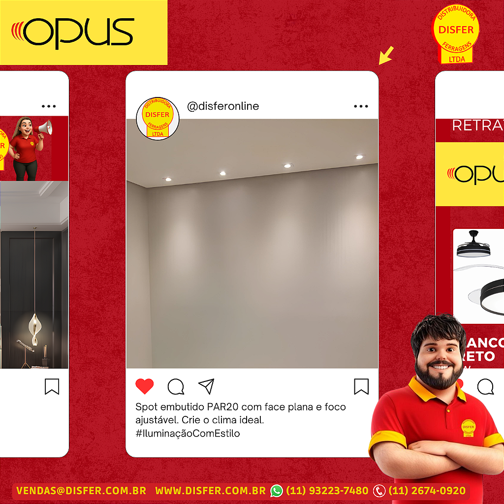 O Spot PAR20 E27 com face plana resolve com elegância e simplicidade.