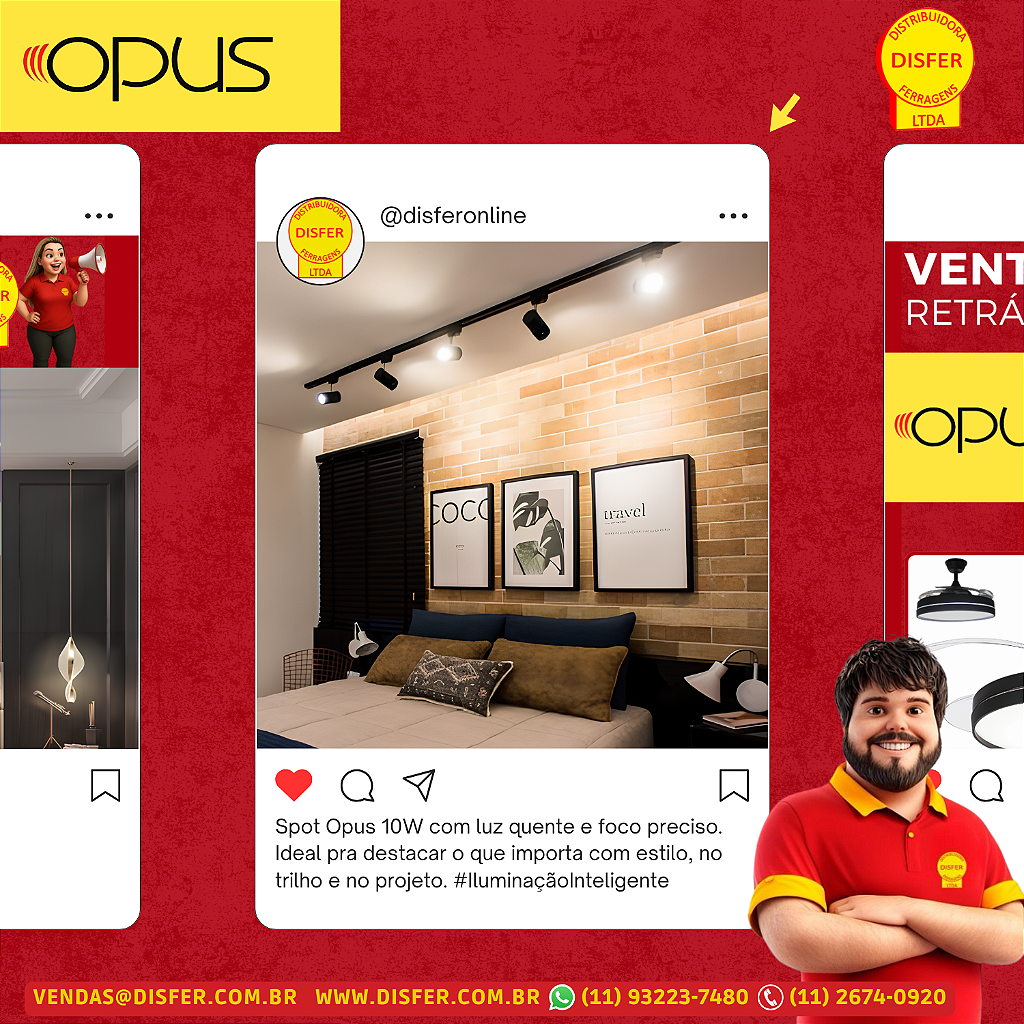 Com o Spot 10W da Opus, o foco vai pra onde interessa: objeto, produto, quadro, textura…