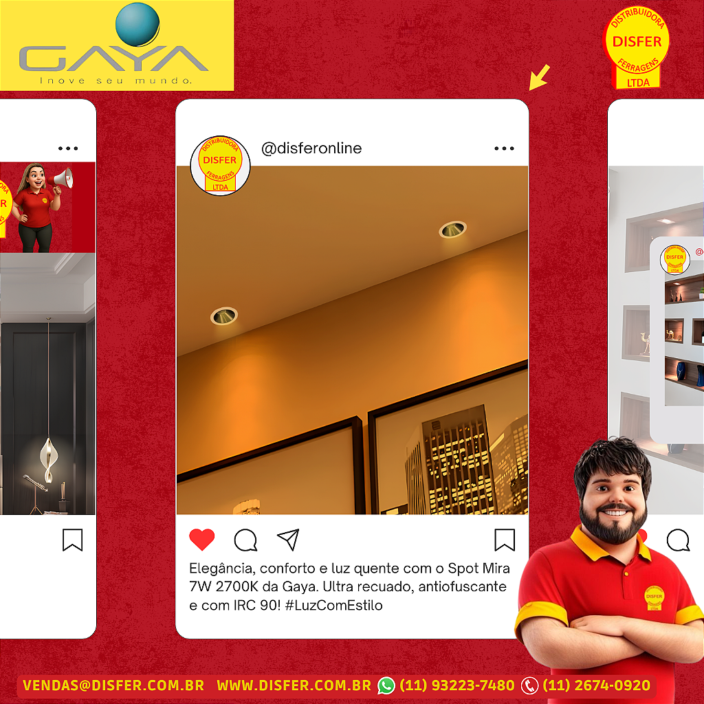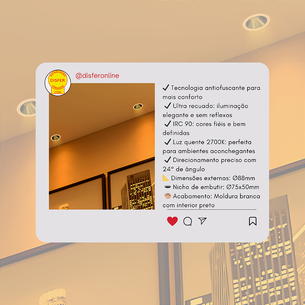Com 700 lúmens, IRC 90 e temperatura de cor 2700K, este spot oferece uma iluminação suave e aconchegante, sem ofuscamento, ideal para projetos residenciais ou comerciais de alto padrão.