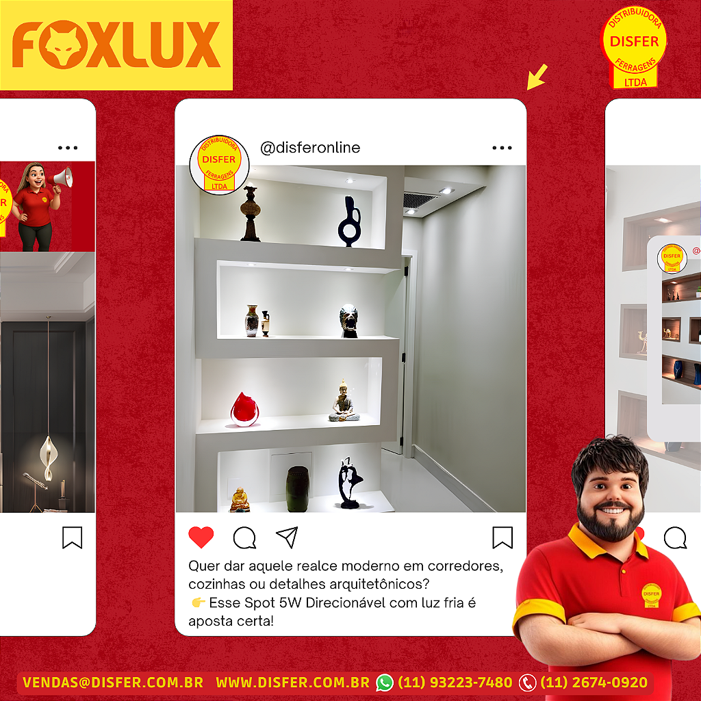 O Spot 5W Foxlux transforma seus espaços com luz fria intensa e direcionável.