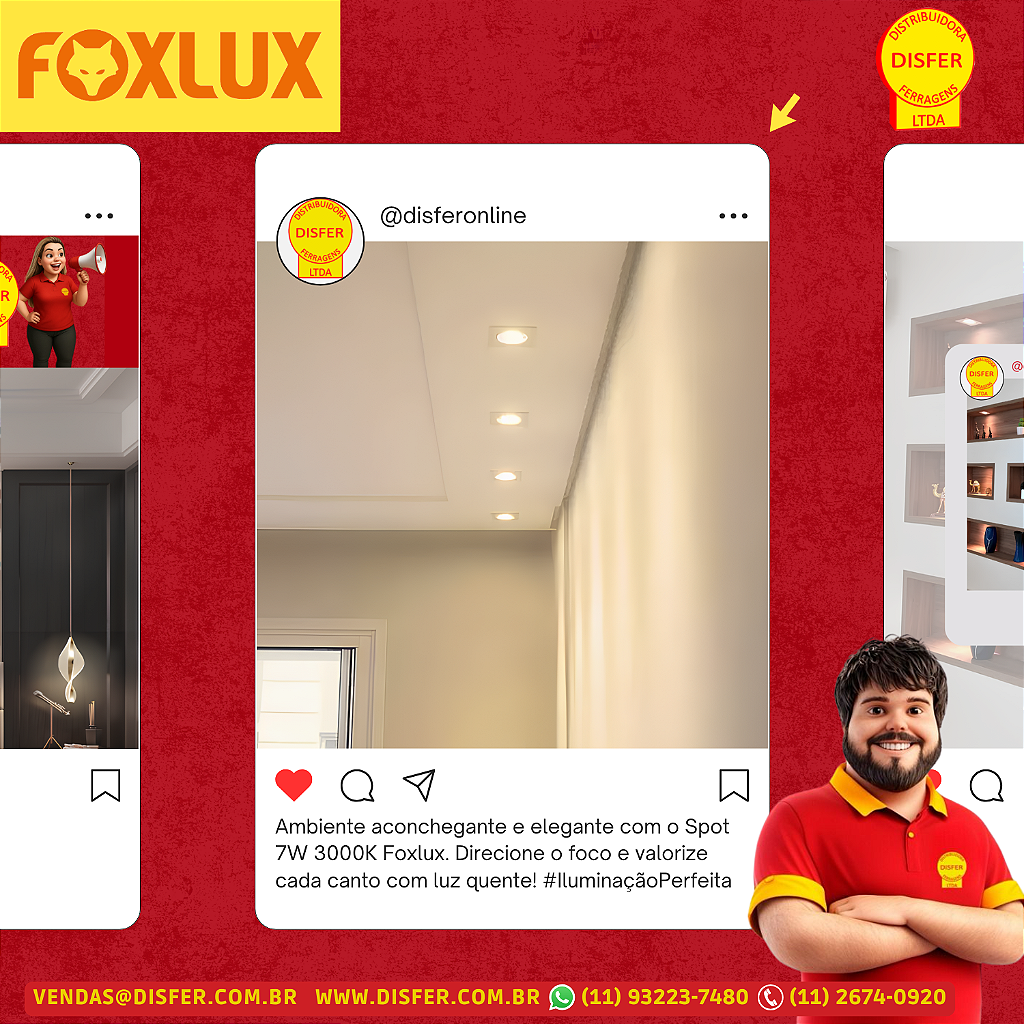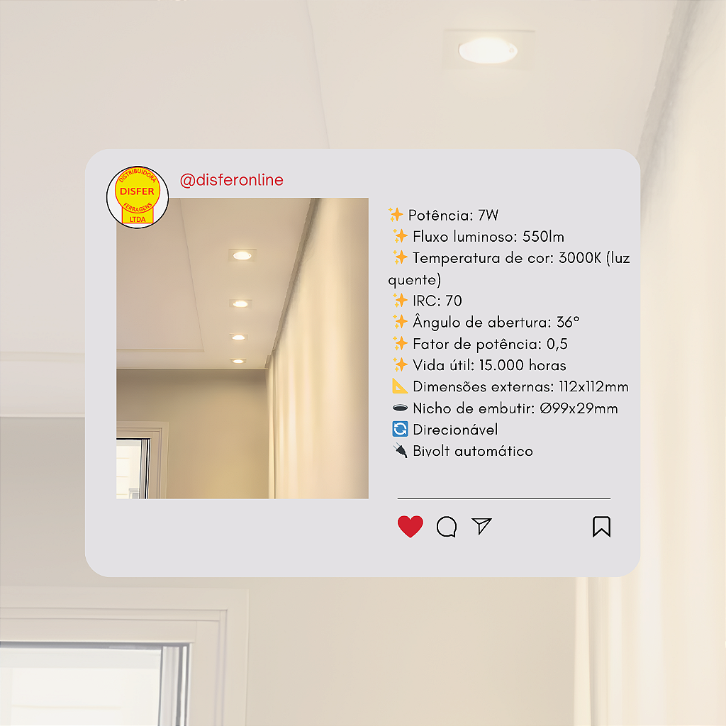 Com 7W de potência e 550 lúmens, esse spot entrega iluminação quente (3000K), ideal para criar ambientes confortáveis, sofisticados e com aquele toque de elegância.