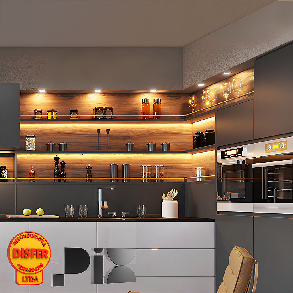 Compacto, discreto e fácil de embutir, ele é ideal para destacar objetos, criar cenários luminosos e elevar o padrão visual de marcenarias planejadas.