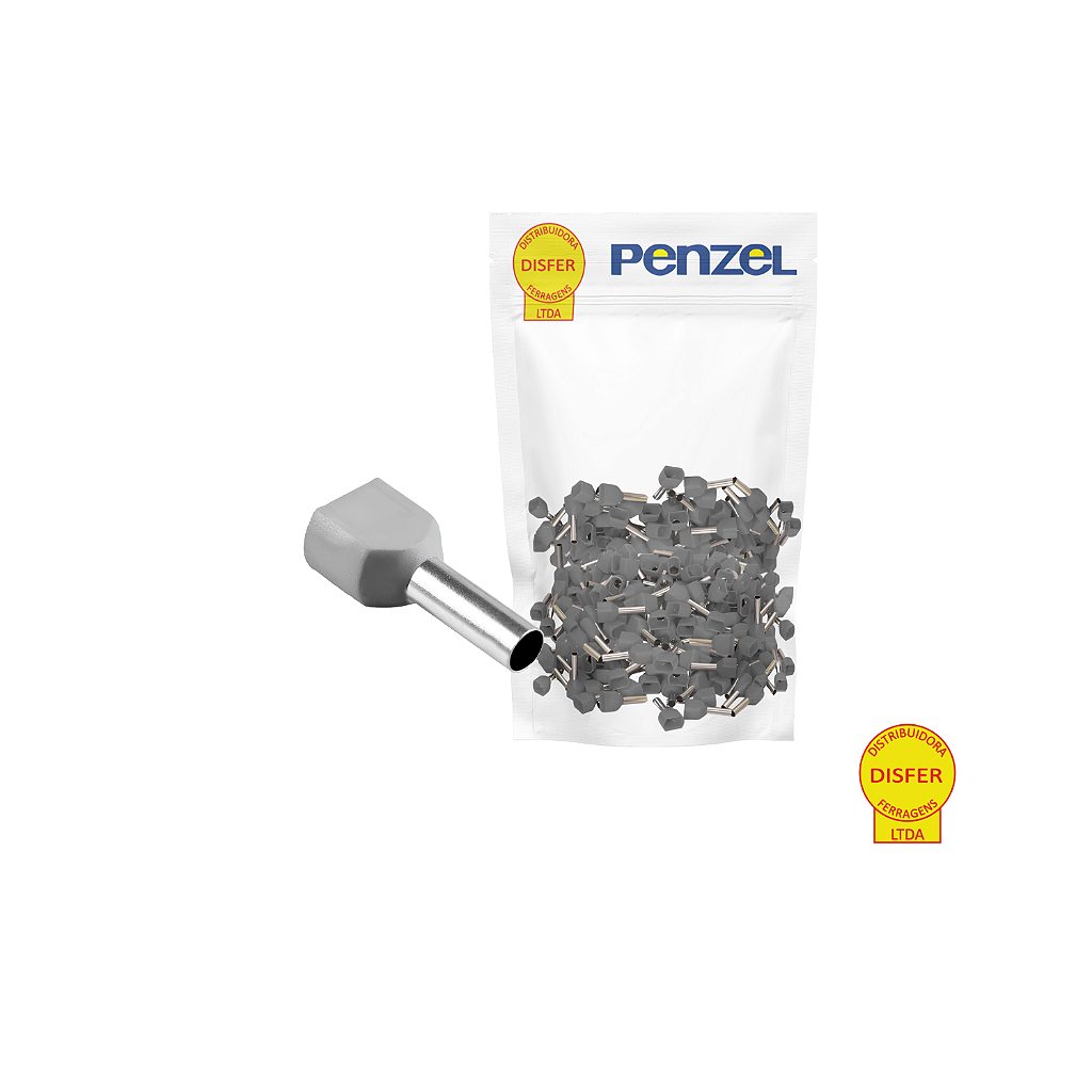 Pacote com 100 Unidades – Terminal Pré-Isolado Ilhós Duplo Cinza 4mm² Condutor 12mm Penzel PZCY-TE4012 GREY