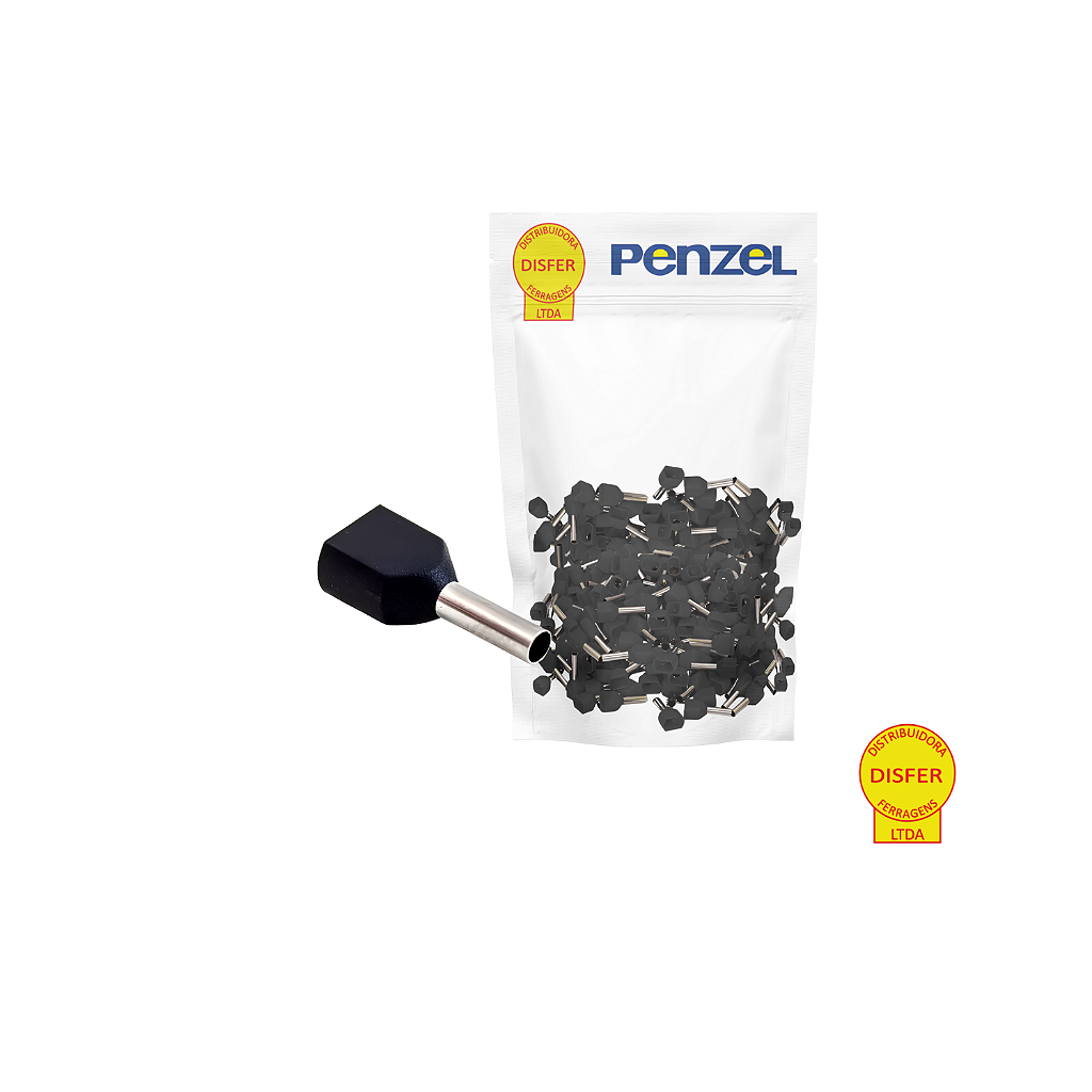 Pacote com 100 Unidades – Terminal Pré-Isolado Ilhós Duplo Preto 1,5mm² Condutor 8mm Penzel PZCY-TE1508 BLACK