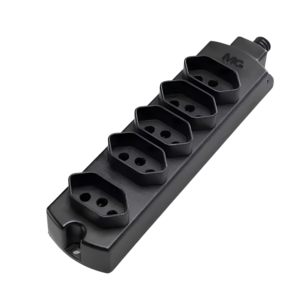 Tomada em Barra Múltipla 2P+T 20A Quintúpla Preta – Margirius